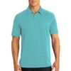A subtle pixelated pattern gives this snag-resistant moisture-wicking polo a look that’s sophisticated enough for the office or the weekend. Created for modern comfort and performance.4.8-ounce 100% polyester jersey Johnny collar with 1 dyed-to-match button and loop closure Open hem sleeves Self-fabric detail at cuffs Slightly curved hemDue to the nature of 100% polyester performance fabrics special care must be taken throughout the printing process.